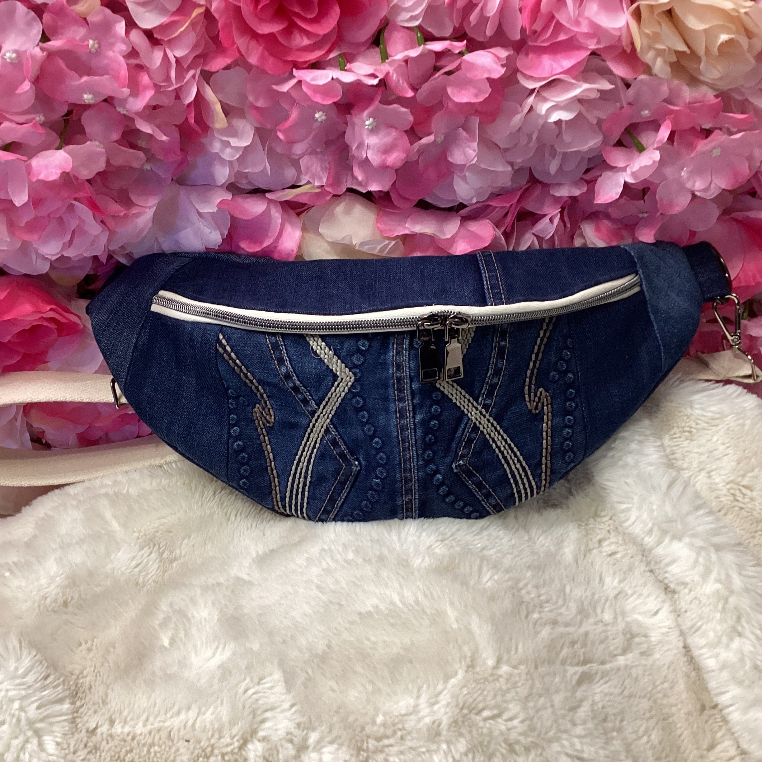 **Eco-Friendly Fashion:** Crafted from sustainable materials, our denim fanny bag is not just a fashion statement—it's a commitment to the planet. Each bag is handmade, ensuring that no two are alike. Embrace your individuality with a unique accessory that reflects your personal style while supporting eco-conscious practices.