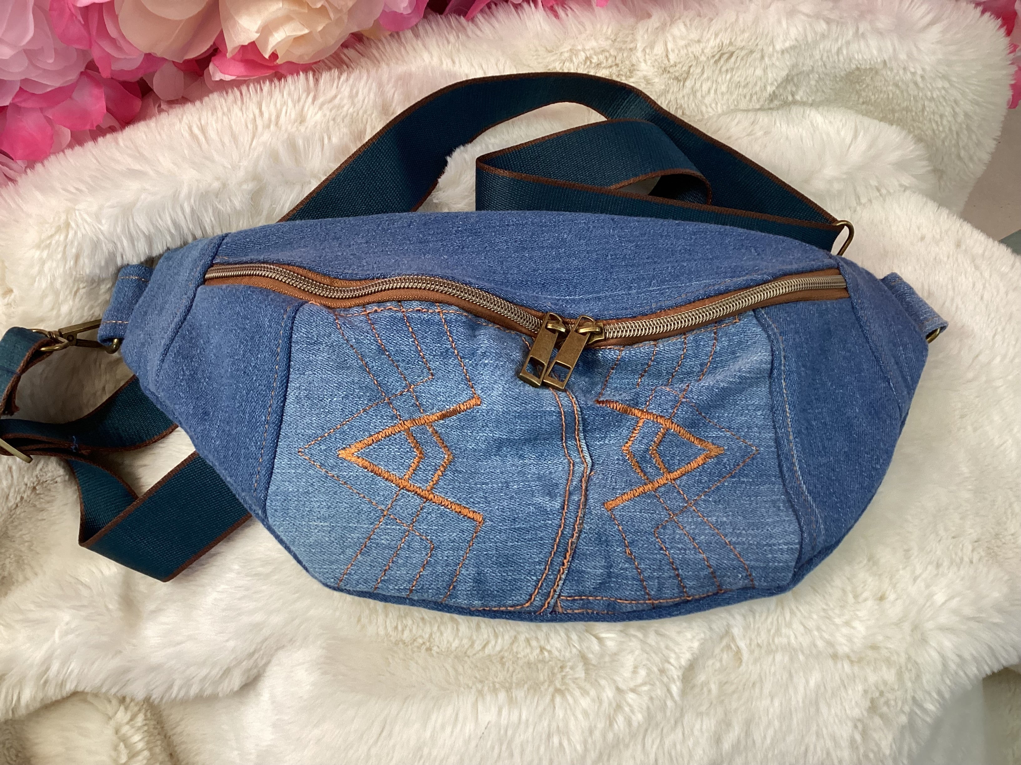 ● Crafted from reclaimed denim for an eco-friendly twist