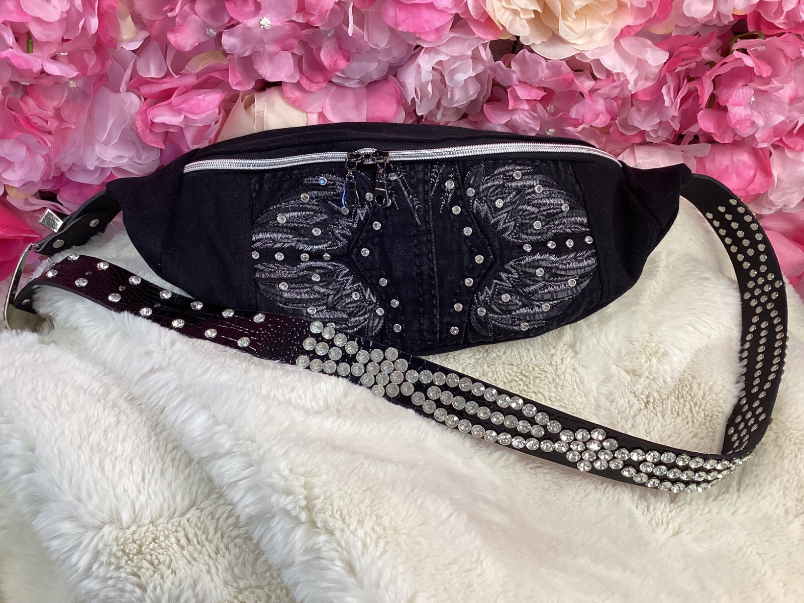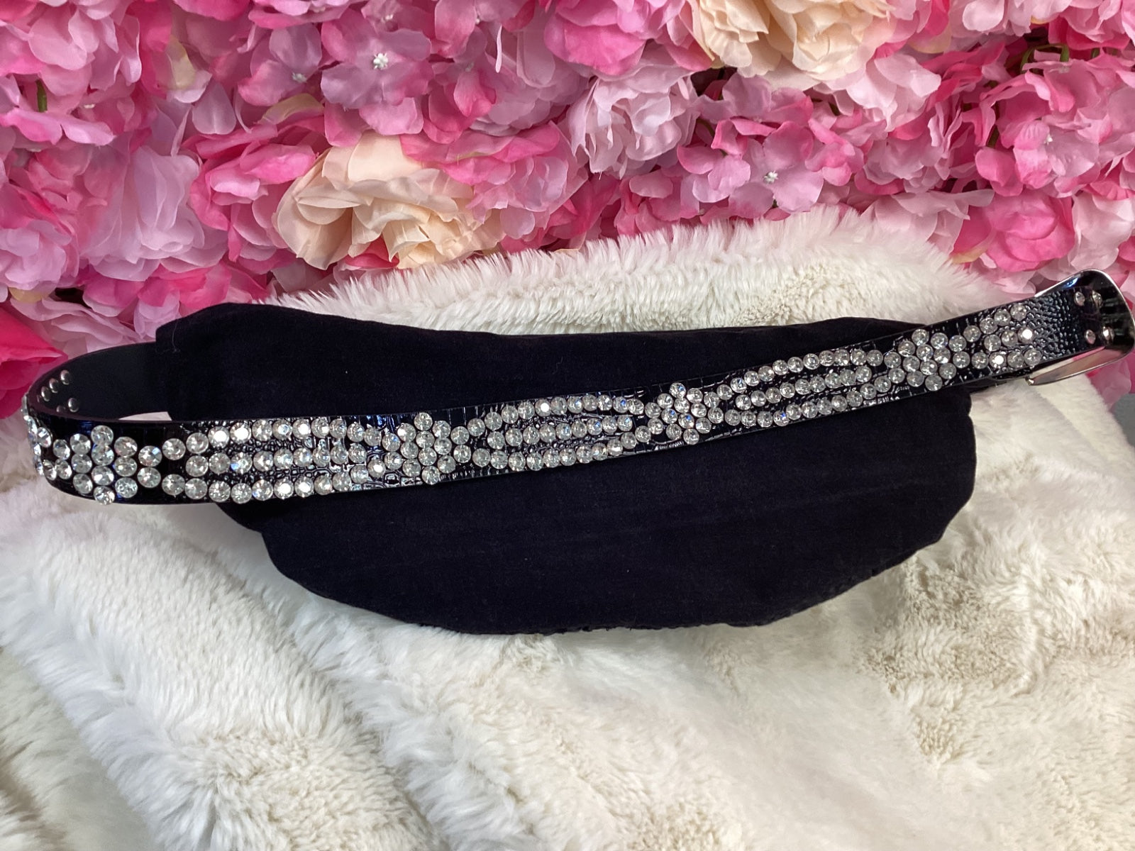 ● Adjustable black rhinestone belt