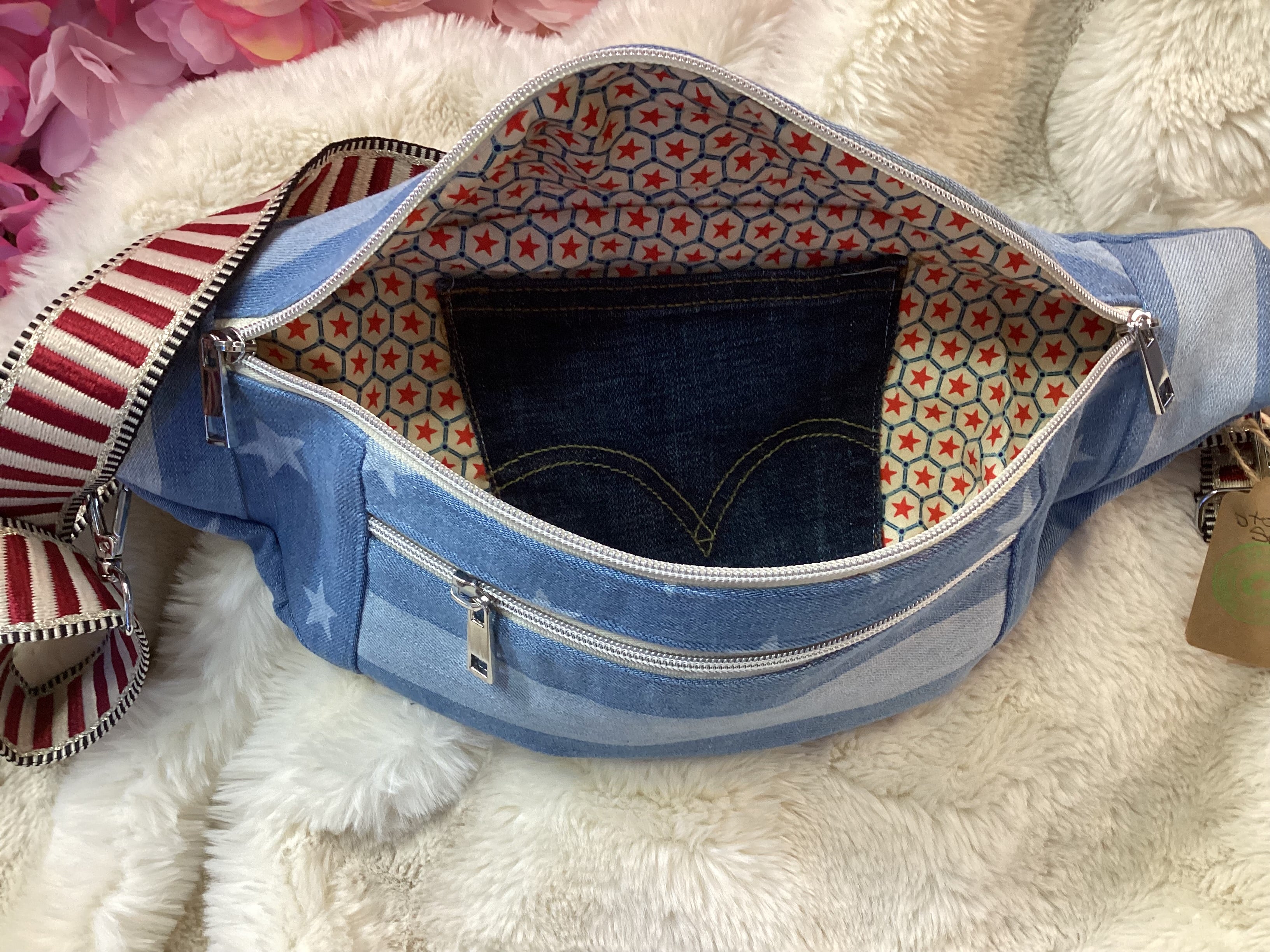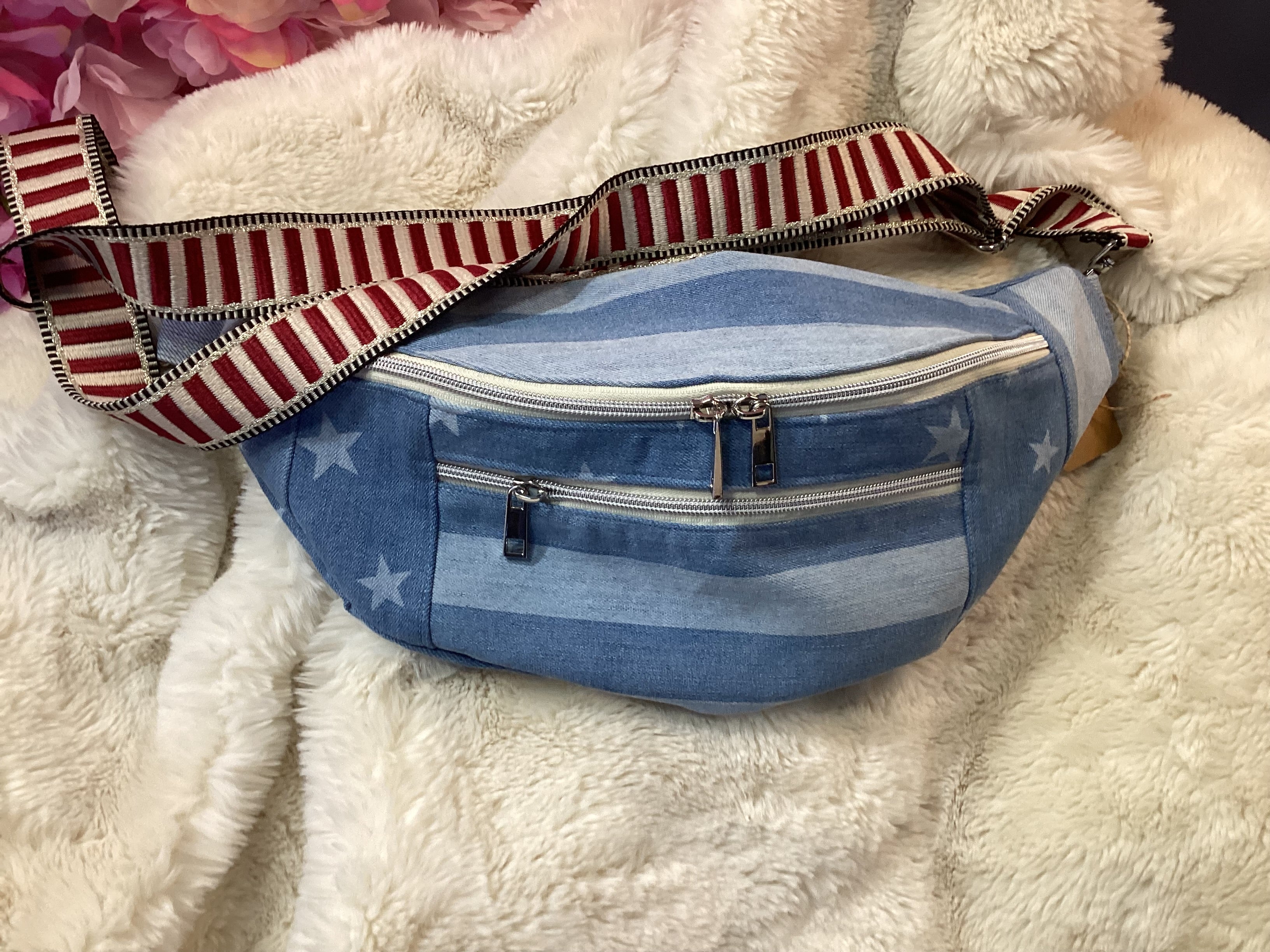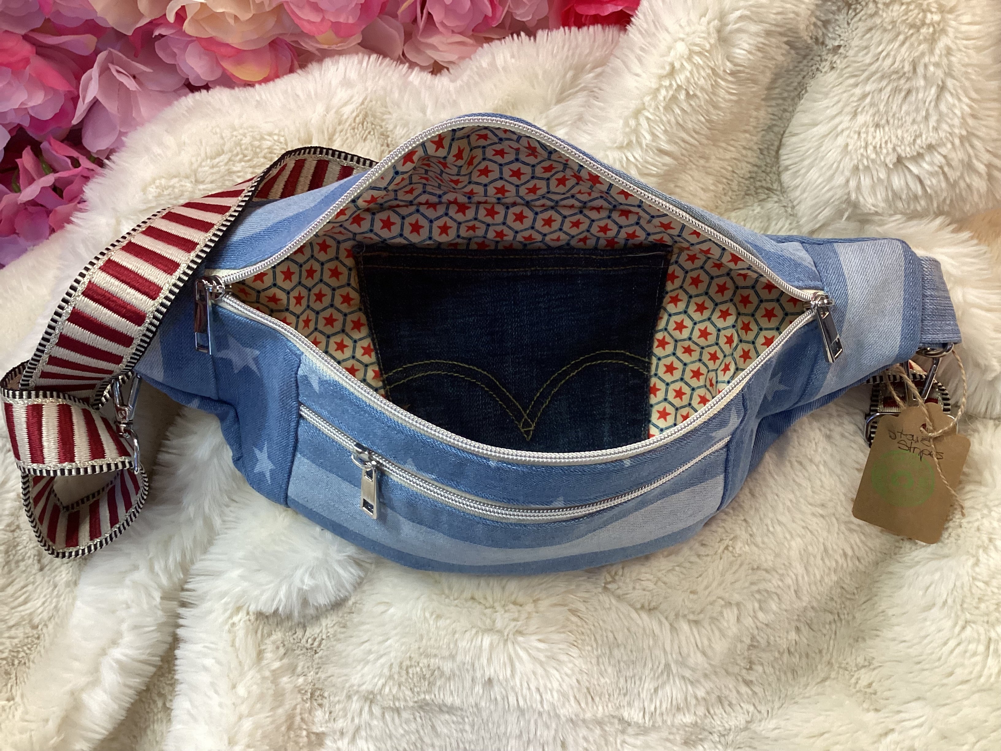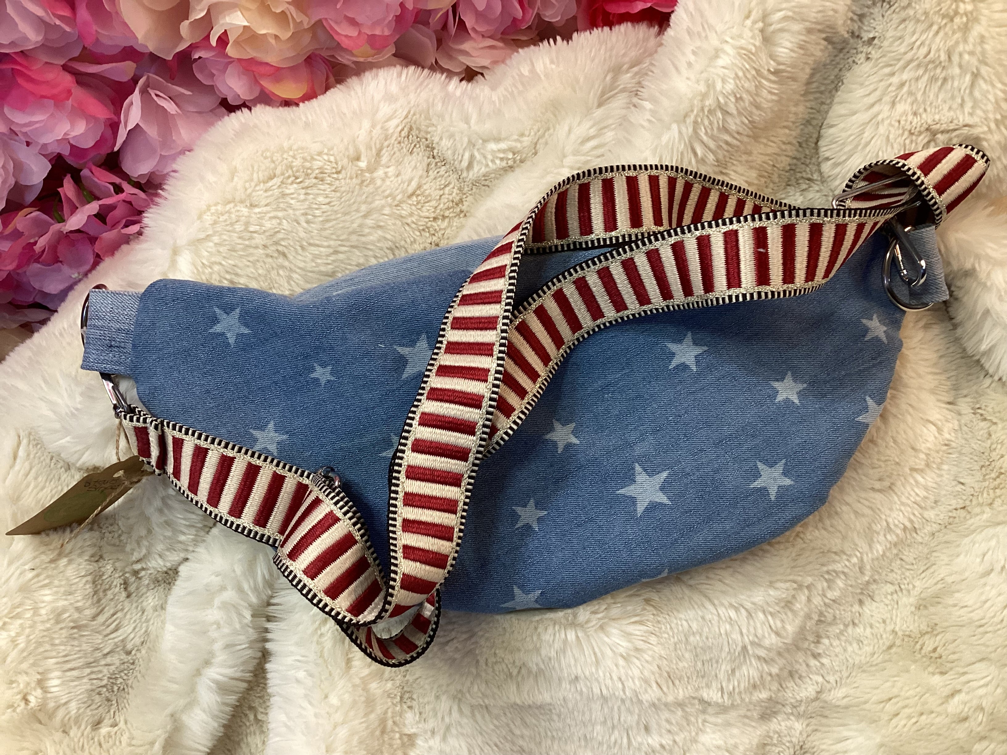 Show off your bold side with the Stars and Stripes Sling Bag—a playful mix of denim patchwork, star-spangled lining, and a standout striped strap. This bag isn’t just an accessory, it’s a vibe—equal parts Americana cool and everyday ease.