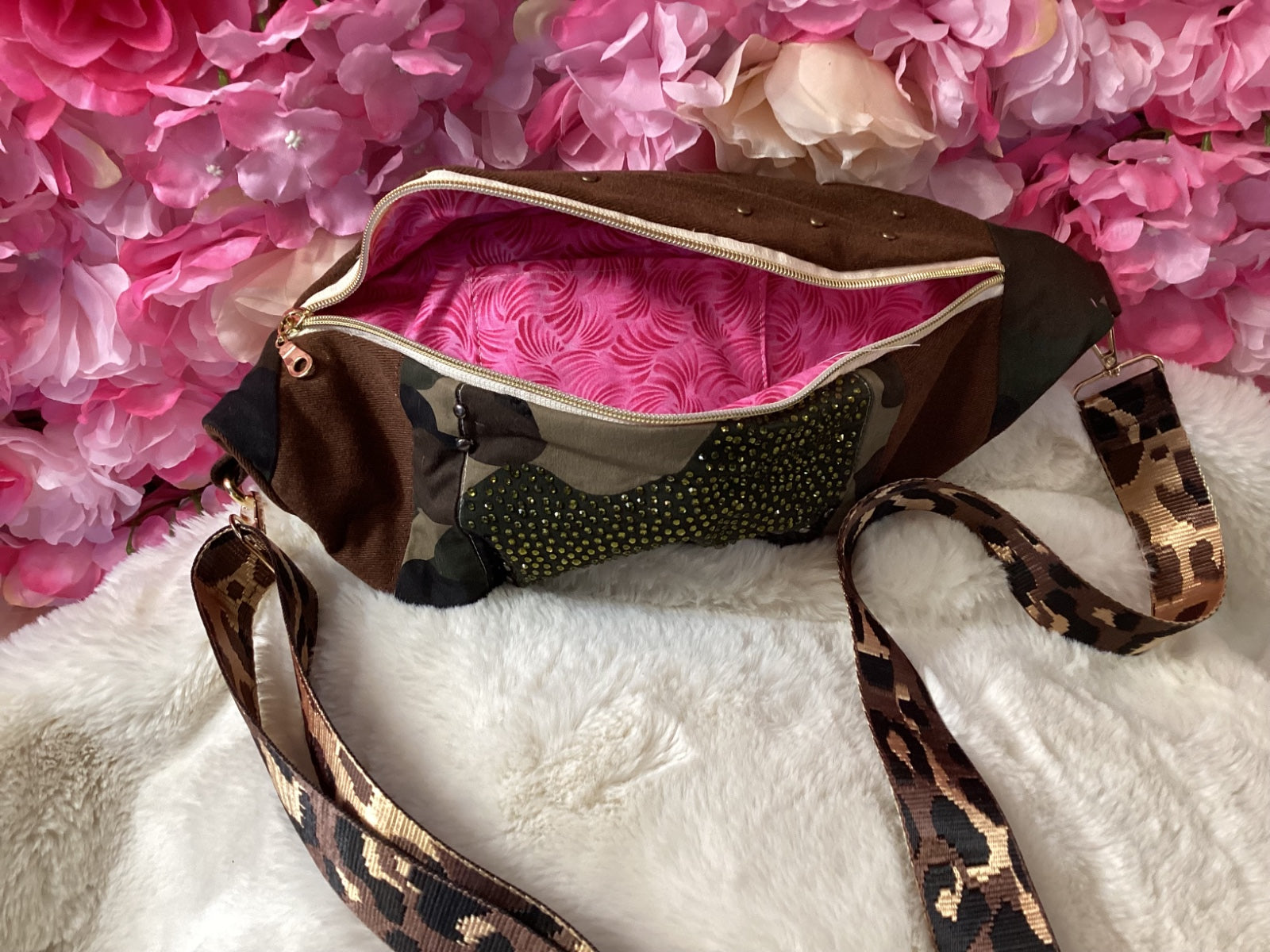 hands free while you navigate your day in effortless style. The eye-catching camo